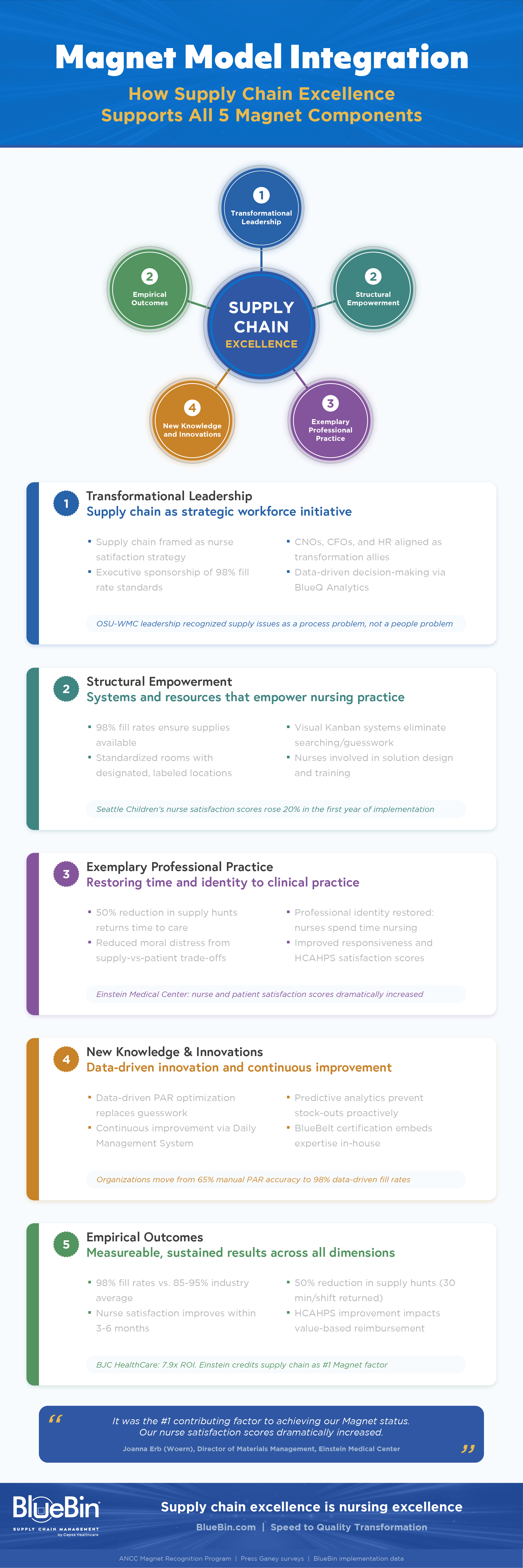 Einstein Medical Center provides direct testimony to the Magnet-supply chain connection. Their Director of Materials Management credits supply chain transformation as the single most important factor in the hospital's Magnet achievement: